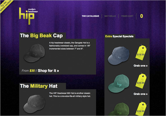 An example e-commerce site, this project is a full online catalogue system with a built-in shopping cart. Users choose items and then process their order. This site also features a back-end, where the vendor can change information, add or remove products, and monitor transactions.